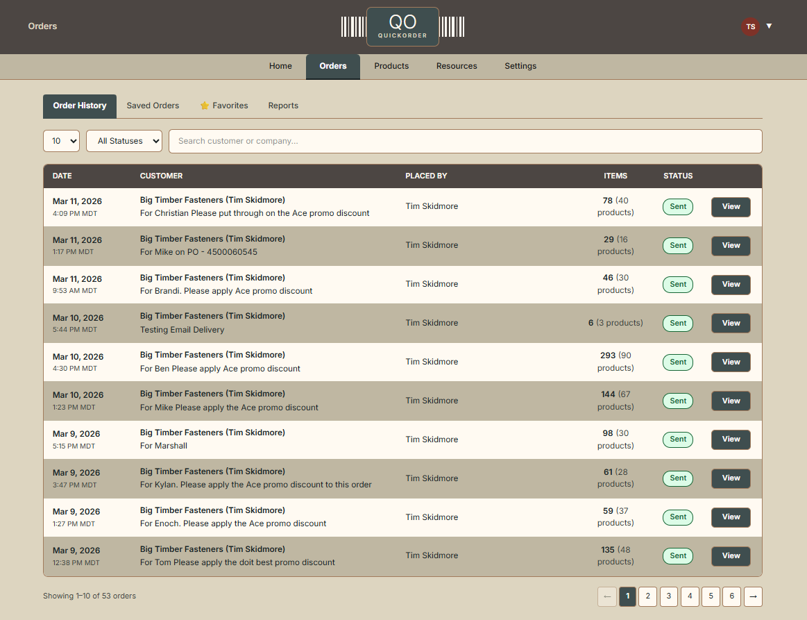 Scan the shelf. Build the order. Send it — all before your rep even checks voicemail.